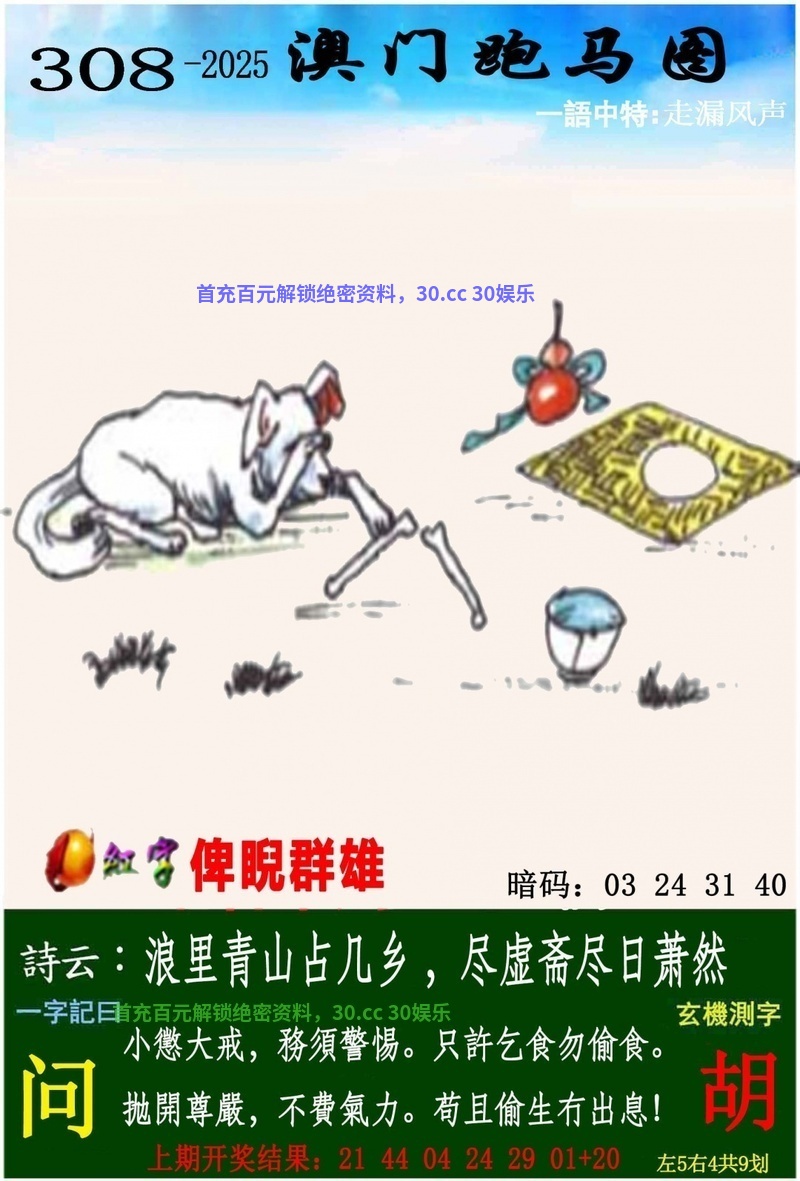 307期:七肖中特【鸡蛇马龙羊狗虎】开:狗20中