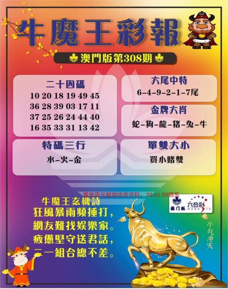306期:七肖中特【鼠猪鸡狗牛龙羊】开:牛17中