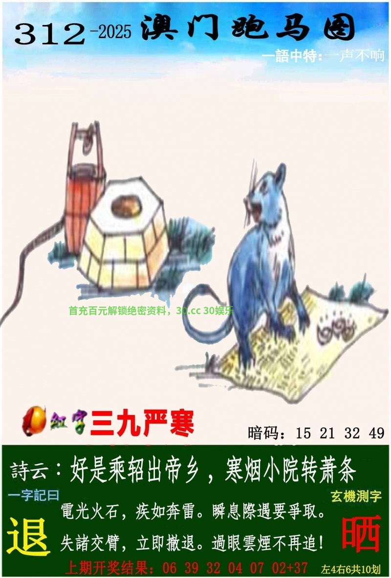 311期:【绝杀三肖】〖鸡牛鼠〗开:蛇37中